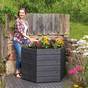 Constructed of durable recycled plastic with a beautiful wooden texture. The dark grey plastic panels are UV and moisture-resistant - no routine sealing, or painting needed.