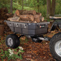 The DR® 15 cu. ft. Swivel Dump Cart features an innovative multi-hitch that allows you to easily connect to your tractor, ATV, or UTV and change from a pin to ball hitch in seconds without the use of additional tools. The rotating hitch and pass-through undercarriage with 12" of ground clearance makes navigating over uneven ground easy. The foot pedal activated swivel dump feature allows you to quickly unload up to 1,250 lbs. of material anywhere within a 100° radius. The 15 cu. ft. impact resistant structural foam body features recessed bolts and molded-in slots to add side walls for increased versatility.
