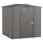 The Arrow Select line of strong, sturdy steel storage sheds is a pleasant addition to your backyard. Made with galvanized steel that is treated to provide long-term protection against corrosion and rust, Arrow Select sheds are engineered to protect your stored items from the elements. Inside, the 71 in. walls provide extra headroom, vertical storage space, and added entryway clearance. That makes it great for storing ladders, rakes, pole saws, and anything you want to pile high. The Arrow Select line also has a high gable roof to prevent pooling of rainwater and debris, built-in air vents for better circulation, and locking door handles for security. It also has a smooth, strong Sherwin-Williams Paint Finish that protects it from the elements and gives the steel extra protection from rust and corrosion.